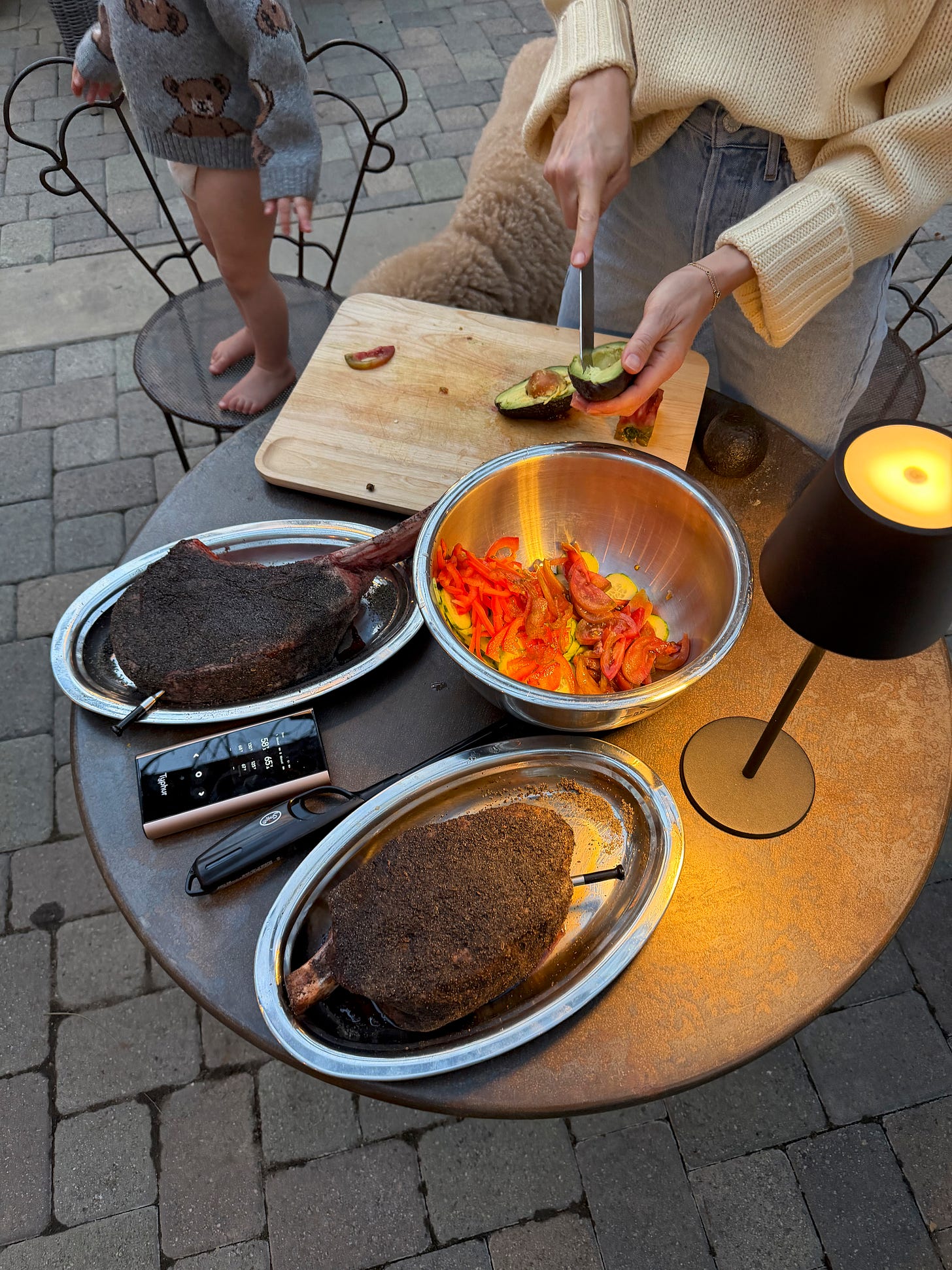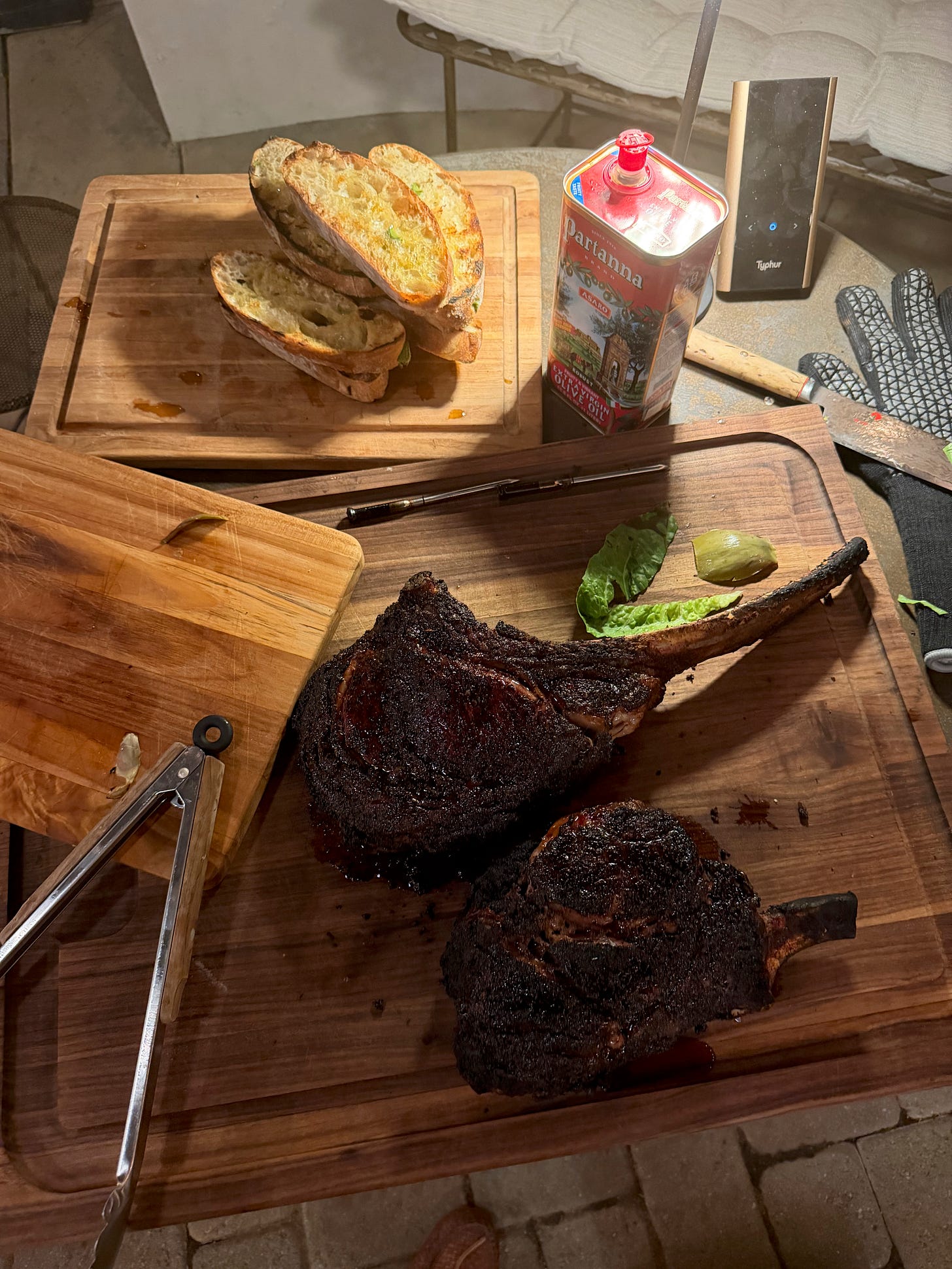 For its Maiden Voyage, I defrosted a Snake River Farms Tomahawk and Cowboy Steak. They seemed like the perfect cuts for open fire cooking. I also recently bought this new Meat Thermometer, which I love from Typhur.