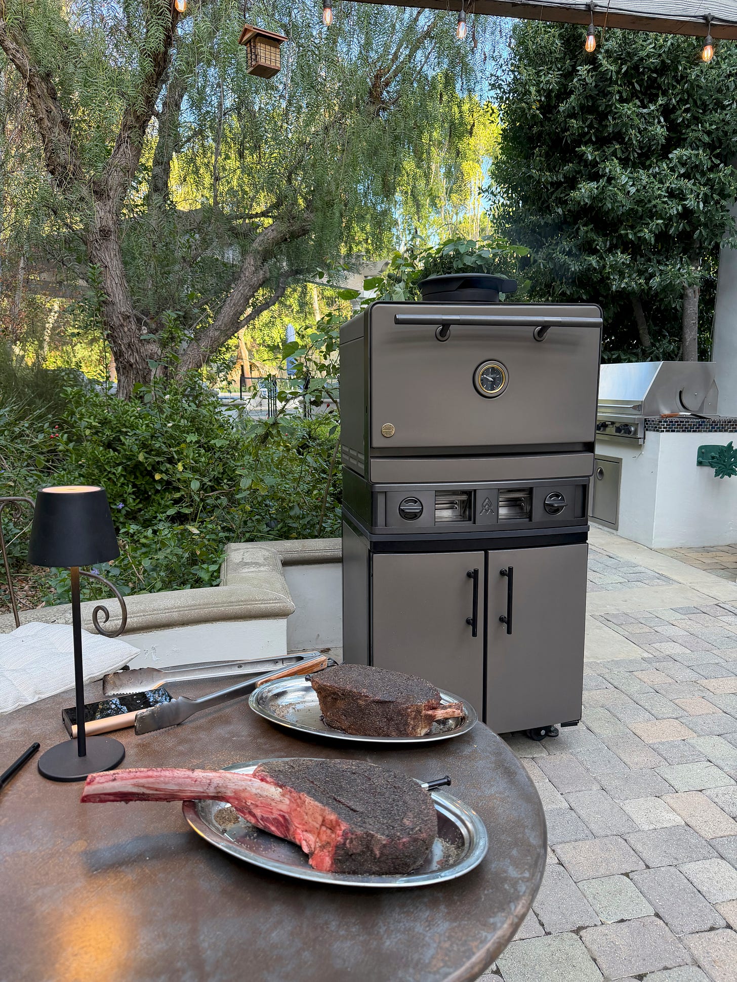 My current outdoor cooking setup consists of an everyday Viking gas grill, a Traeger Smoker, a Weber Charcoal grill, and a Gozney pizza Oven. Adding this Emberhaus will definitely replace my Weber, and when I have the time to make a nice fire, I’ll be using it over my gas grill.